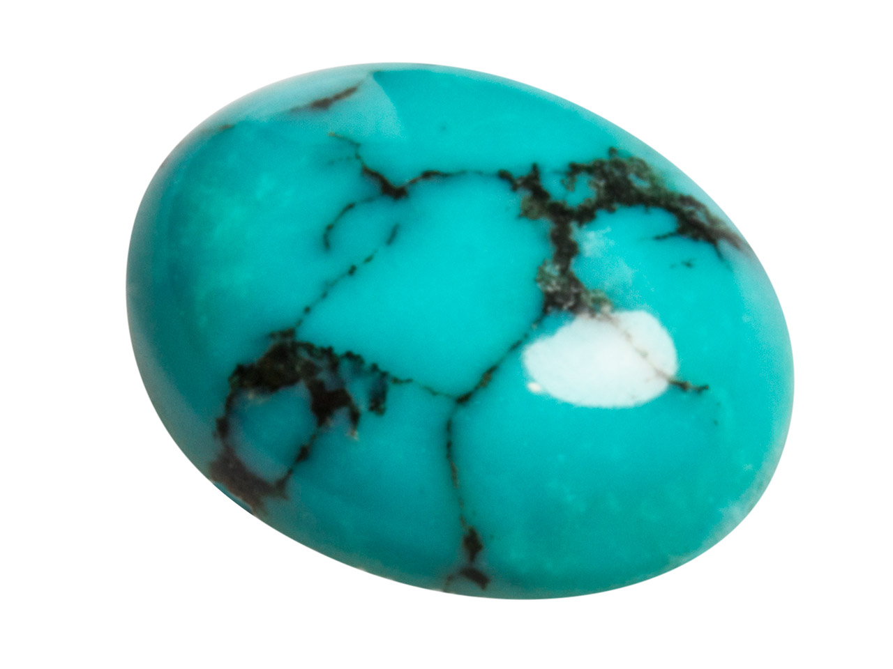 Die Farbe des Türkis kann von hellem Blassblau bis hin zu Grünblau variieren. "Matrix" bezieht sich bei diesem chinesischen Türkis auf das Mineral, in dem sich der türkisfarbene Edelstein gebil...