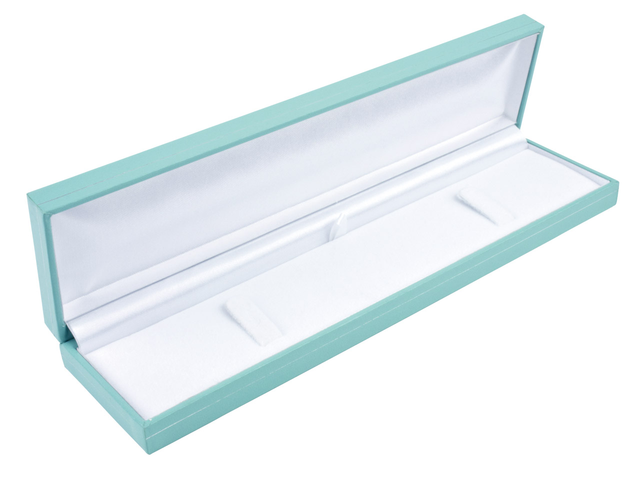 Etui aus türkisfarbenem Kunstleder mit silberner Zierleiste. Maße: 220 x 54 x 22 mm. Bitte beachten Sie, dass die Größen leicht variieren können. Wird in einer Schutzhülle geliefert.