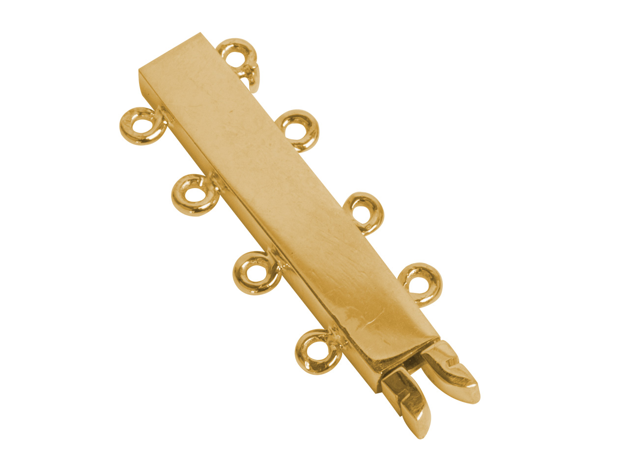 Diese vierreihige, glatte oder einfarbige Schließe aus 18k Gelbgold 3N, die in Frankreich hergestellt wird, hat eine Gesamtlänge von 22,8 mm (inkl. Druckstück) und eine Nutzlänge von 20 mm. Der...