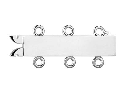 Diese dreireihige, glatte oder einfarbige Schließe aus 18k Graugold, die in Frankreich hergestellt wird, hat eine Gesamtlänge von 20,5 mm (inkl. Druckstück) und eine Nutzlänge von 18 mm. Der re...
