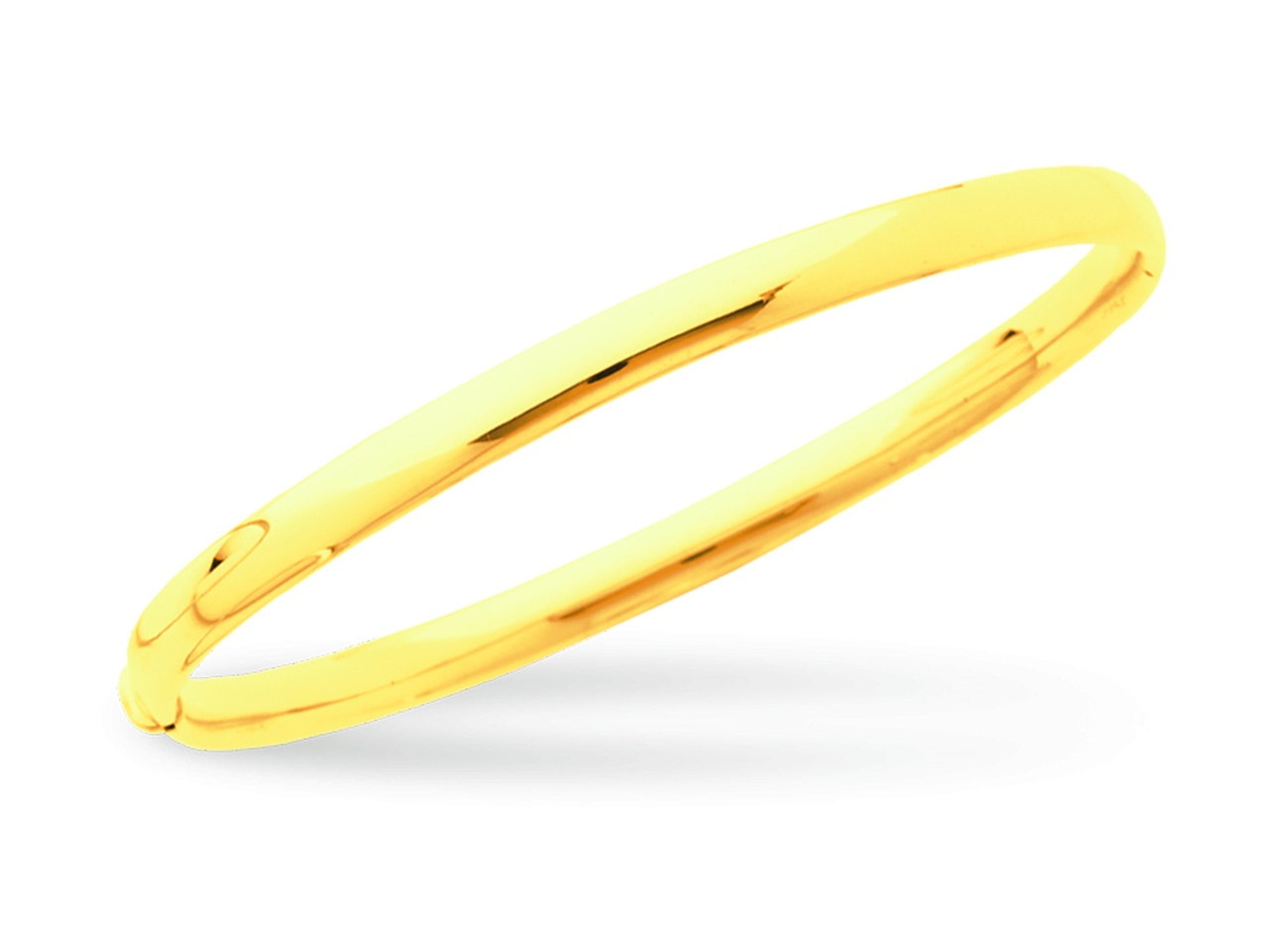 Durchmesser des Fadens oder der Kette: 5 mm. Durchmesser: 63 mm. Verschluss: Klickverschluss. 18k Gelbgold. Form des Drahtes: Oval. Form des Armbands: Oval. Aufklappbar.