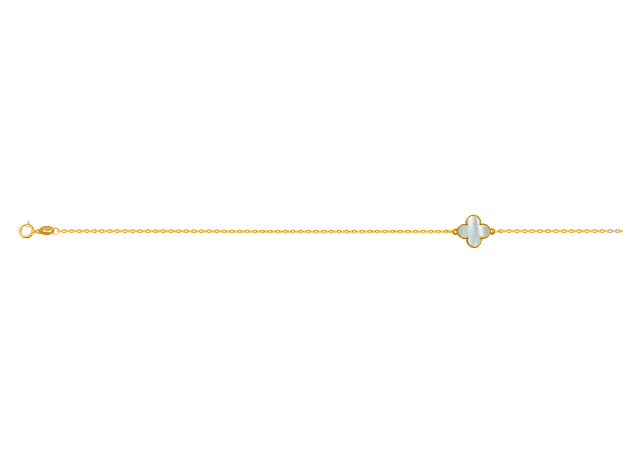 Armband Blüten-motiv Perlmutt An Kette, 17+3 Cm, 18 Kt Gelbgold - VLAA0341