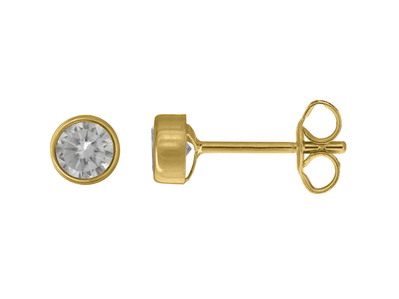 Ohrringe Zirkoniumoxid Rund Zargenfassung 4 Mm, Gelbgold 18k - XLFR9080