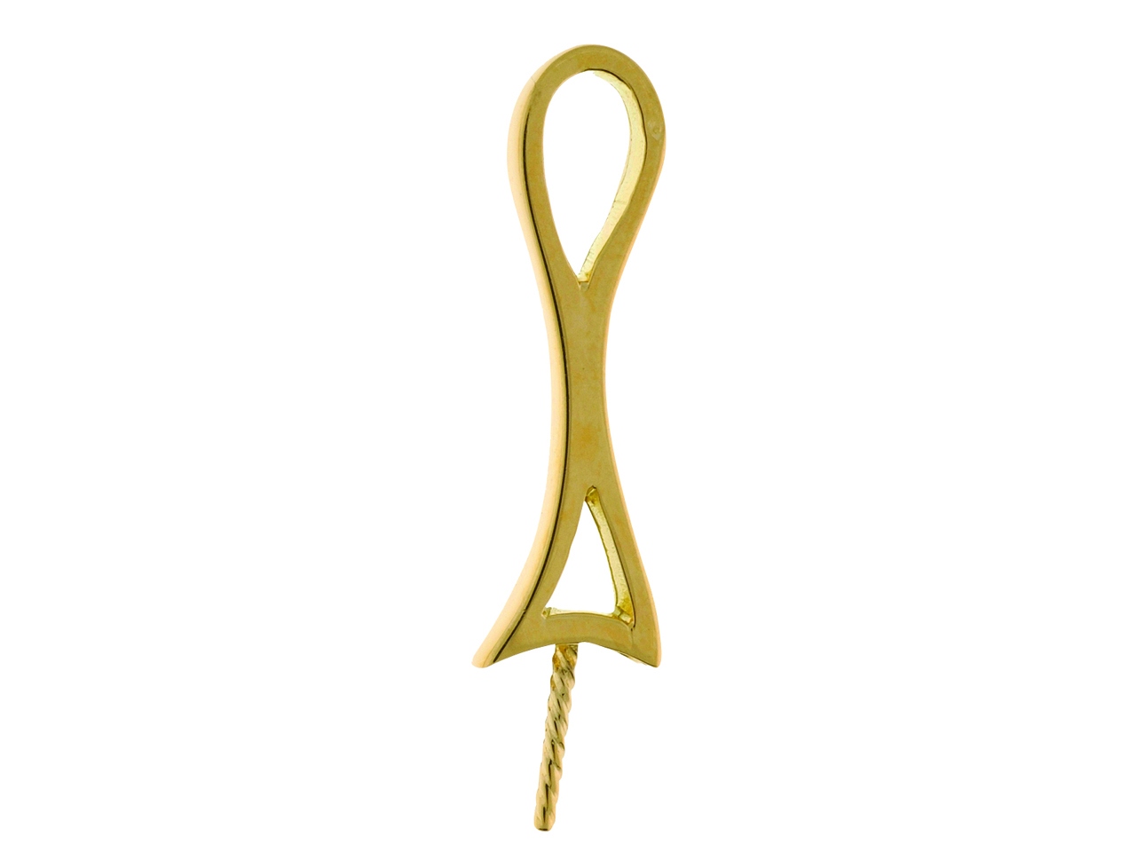Für 8 bis 10 mm große Perlen. Dieser Anhänger ist aus 18 Karat Gelbgold und hat eine dreieckige Form, die sich über der Perle abzeichnet, bevor sie in einem Ring endet. Dieser Perlenanhänger is...