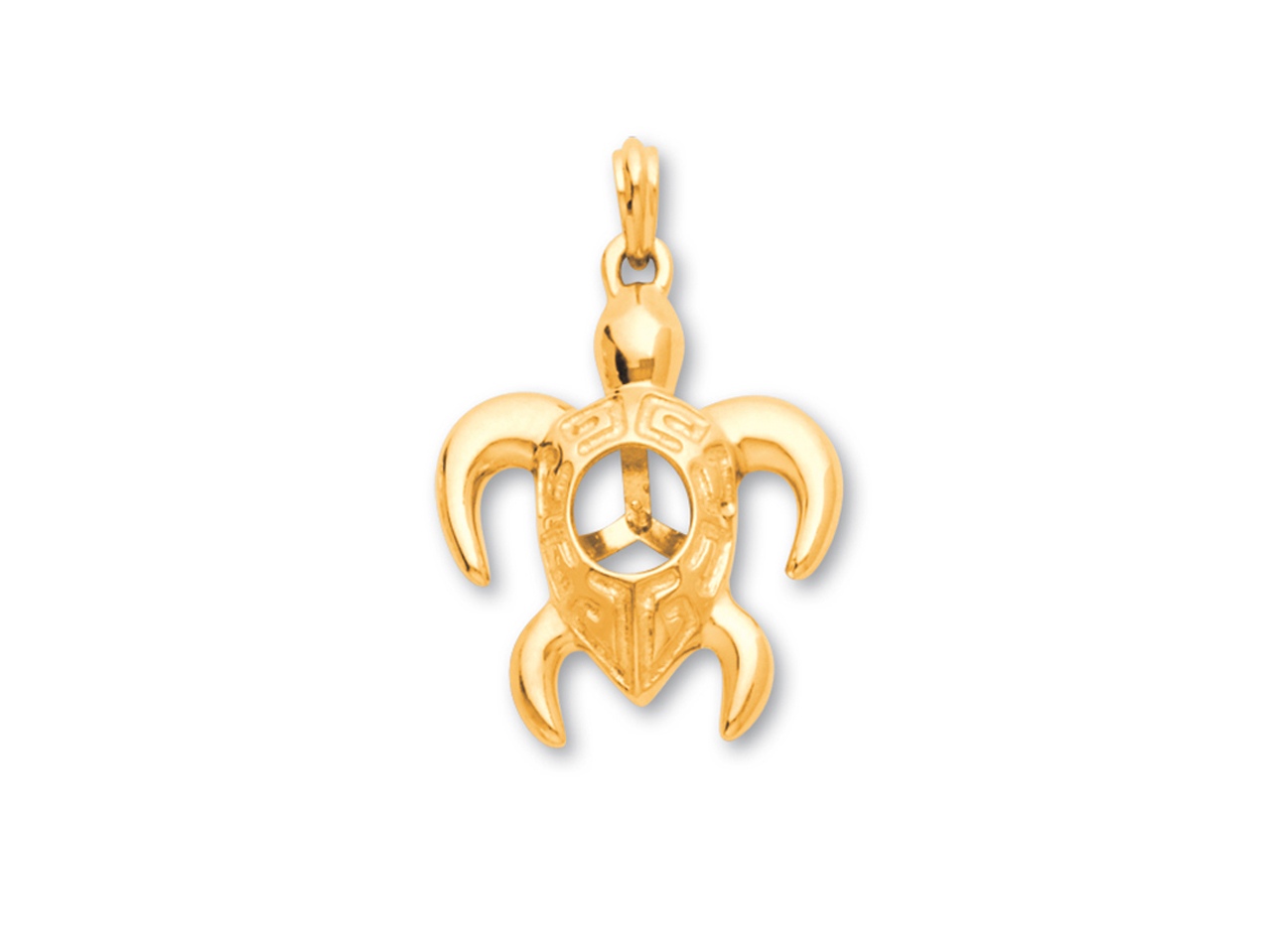 Für 7 bis 9 mm große Perlen. Dieser Anhänger ist aus 18 Karat Gelbgold mit Öse und Anhängeröse. Er hat die Form einer Schildkröte, auf der sich die Perle in der Mitte positioniert. Maße der Sch...