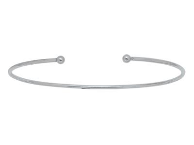• Armband Massiver Offener Armreif, Runddraht 1,5 Mm, 2 Kugeln, 62 X 46 Mm, 18k Weißgold - Standard Bild - 1