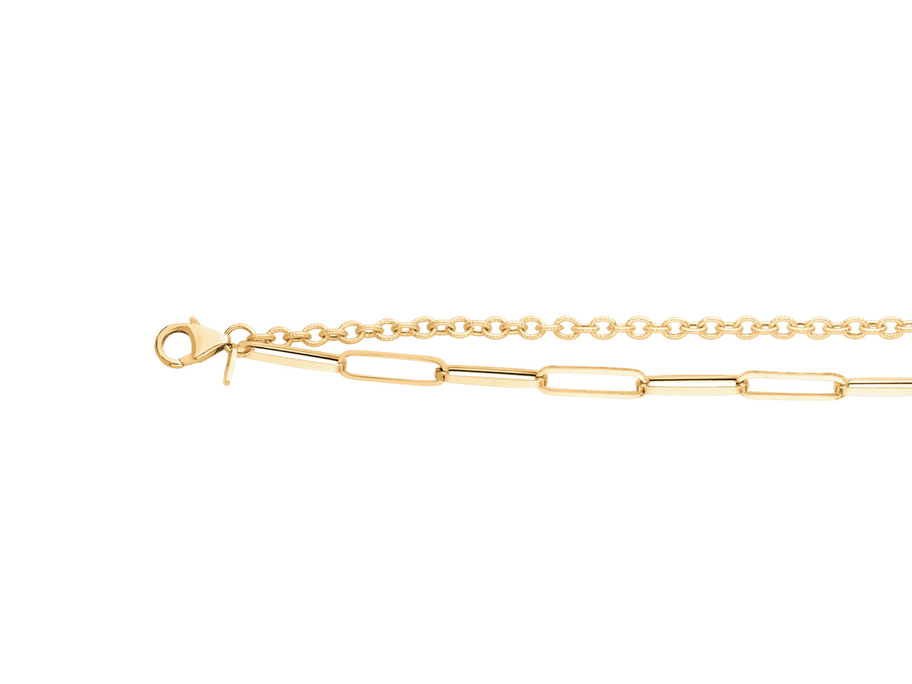 Doppelkettenarmband, Rechteckige Hohlmasche 4 MM Und Runde Hohlmasche Forçat, 17+2 Cm, 18k Gelbgold - VLFRA099