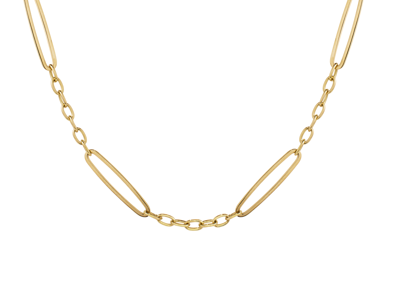 Halskette Große Rechteckige Glieder, Abwechselnd For\at-glieder 3 Mm, 60 Cm, Gelbgold 18 Kt - Standard Bild - 1