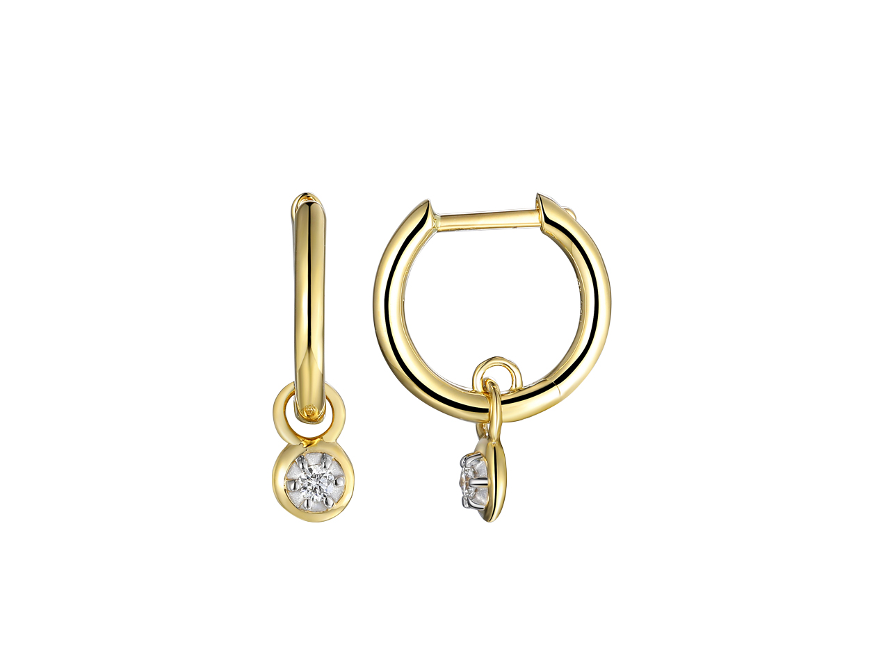 Creolen 9 MM Mit Diamant-anhänger Zargenfassung 0,05 Ct, Höhe 17 Mm, Gelbgold 18 Kt - XLFR9300