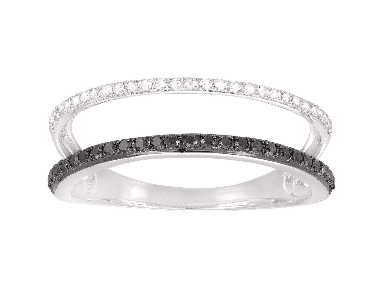 Doppelreihenring, Weiße Diamanten 0,07ct Und Schwarze Diamanten 0,11ct, 18k Weißgold, Ringgröße 52 - Standard Bild - 1