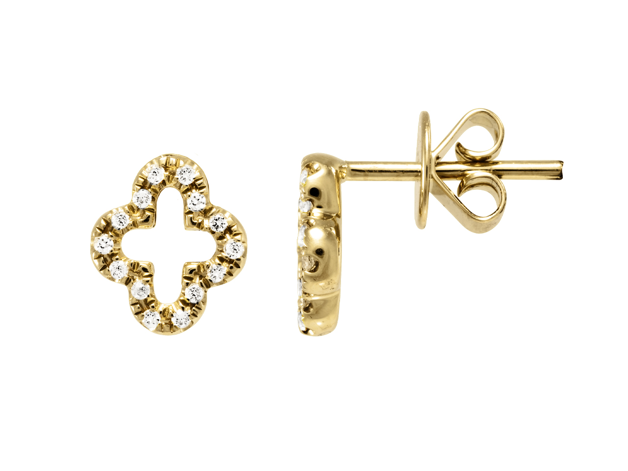 Durchbrochene Kleeblatt-ohrringe 7 X 8 Mm, Diamanten 0,08 Ct, Gelbgold18 Kt