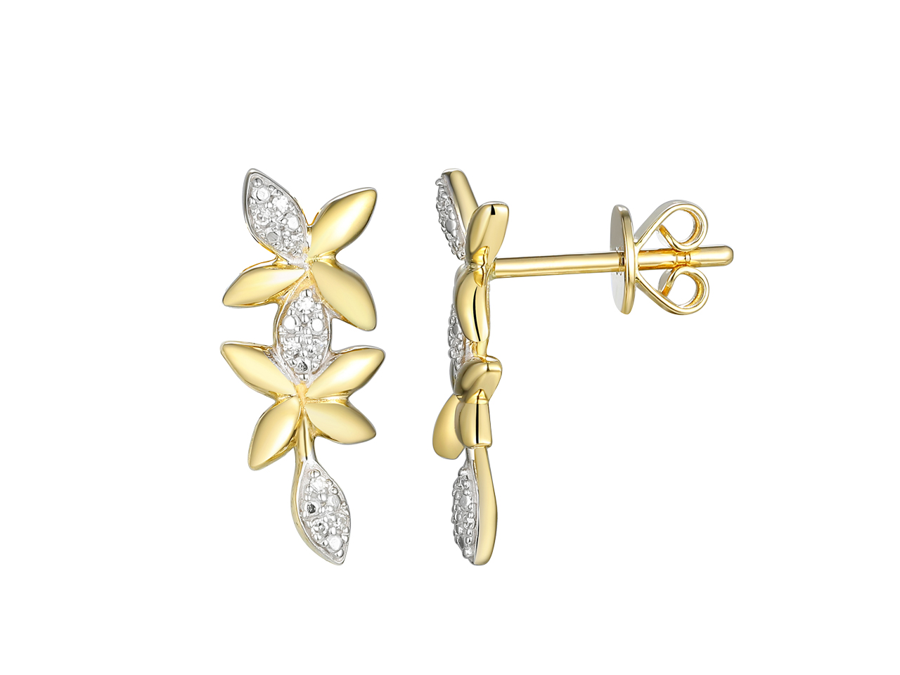 Hängeohrringe Blumen 16 X 6 Mm, Diamanten 0,03 Ct, Gelbgold 18 Kt - XLFR9291