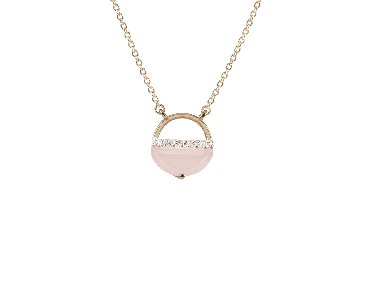 Halskette Mit Kreismotiv, Diamanten 0,05ct Und Rosenquarz 0,33ct, Innendurchmesser 10 Mm, 40,50-42 Cm, 18k Roségold - VOFRA326