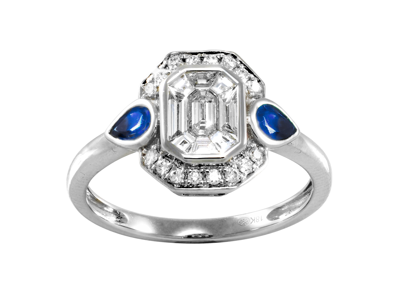 Ring Cocktail 9 X 11 Mm, Runde Diamanten Und Baguettes 0,42 Ct, Saphire Tropfenschliff 0,35 Ct, Graugold - XMFRA15J