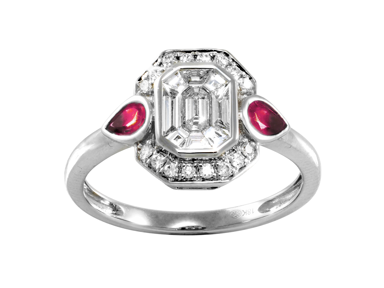 Ring Cocktail 9 X 11 Mm, Runde Diamanten Und Baguettes 0,44 Ct, Rubinetropfenschliff 0,36 Ct, Graugold 1 - XMFRA16J