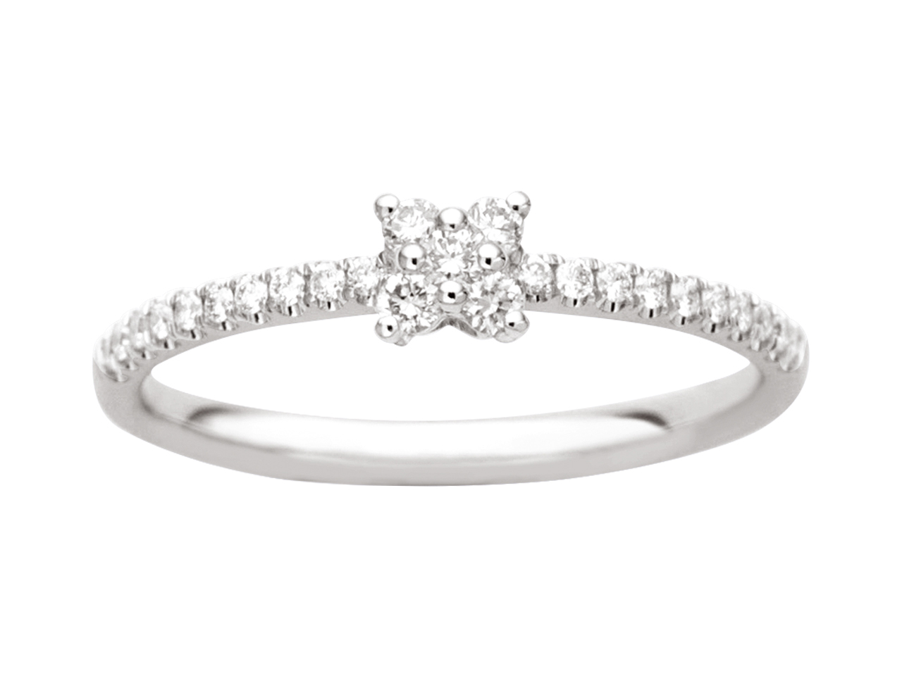 Ring Kleines Quadrat, Fassung Mit Diamanten 0,22ct, 18k Weißgold, Ringgröße 48