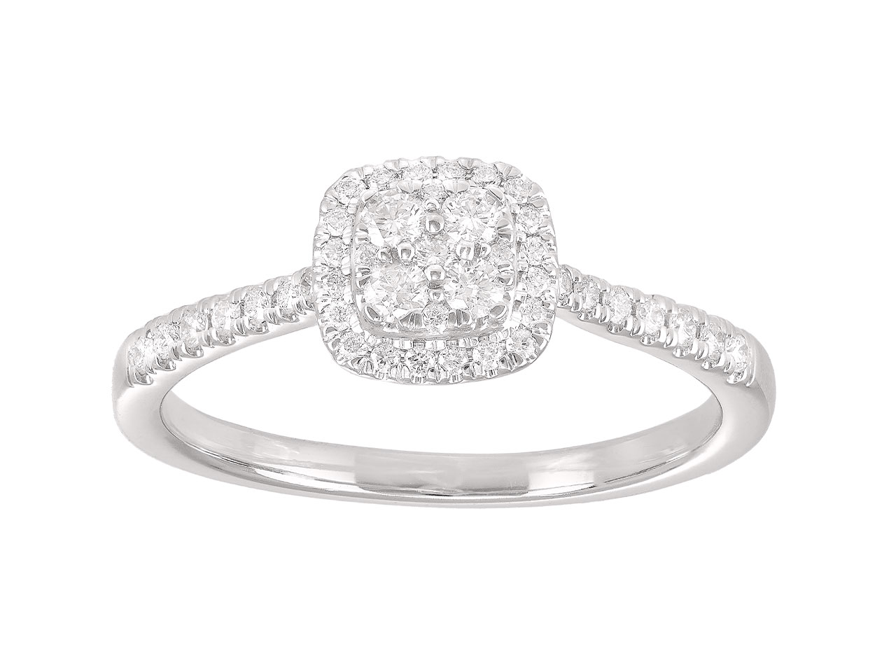 • Ring Mit Quadratischem Motiv, Hauptteil Besetzt Mit Diamanten 0,24ct, 18k Weißgold, Ringgröße 50 - Standard Bild - 1