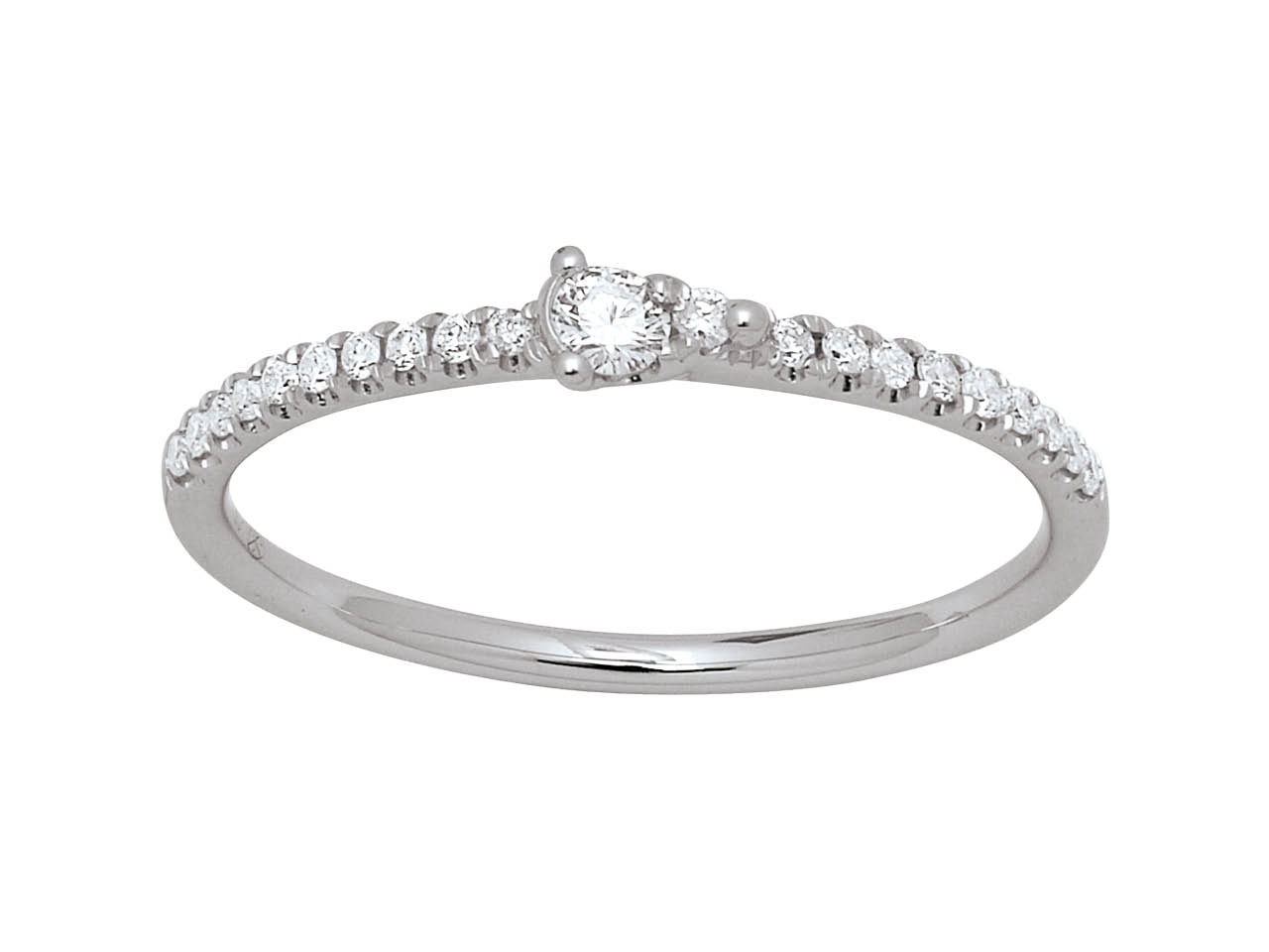 Solitär Mit Nebensteinen, Diamanten0,14ct, 18k Weißgold, Ringgröße 50