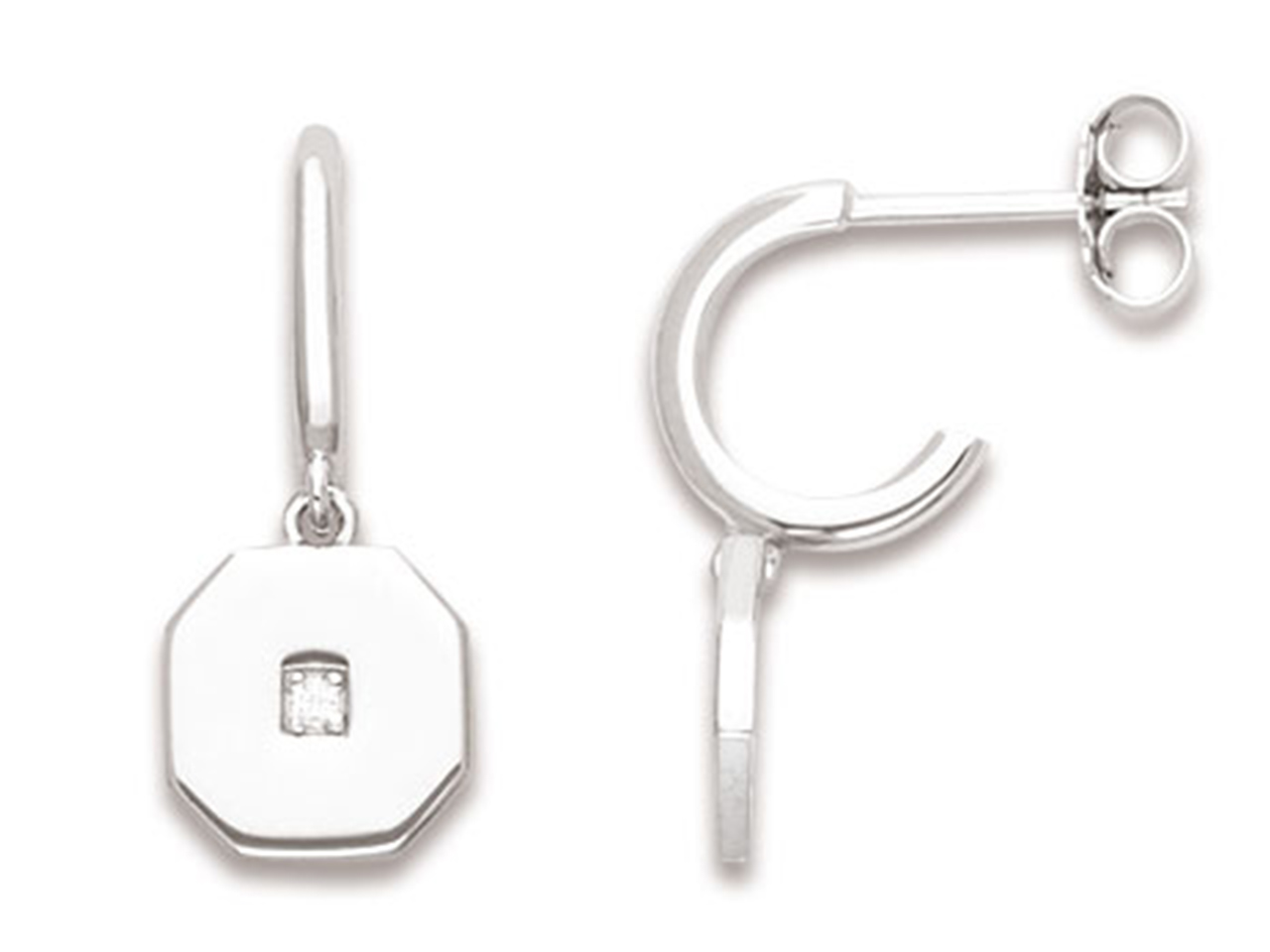 Hängende Creolen, Motiv Oktogon Zirkonia 20 Mm, Silber 925 Rhodiniert - Standard Bild - 1