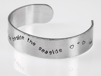 Rohling für ein Armband aus 925er Silber. Er ist etwa 150 x 10 x 1 mm groß. Verwenden Sie das Biegewerkzeug von ImpressArt (Code 999 IA77), um das Armband herzustellen. Dieses Werkzeug ist einf...