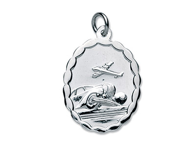 Diese Christophorus-Medaille aus 925er Silber hat eine ovale Form mit einem Rand. Sie zeigt das traditionelle Bild des Heiligen Christophorus, der der Heilige der Reisenden ist. Diese Medaille ...