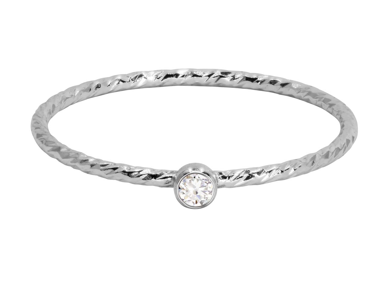 Gedrehter Ring Mit Weißem Zirkonia 2 Mm, Silber 925, Ringgröße 53/54