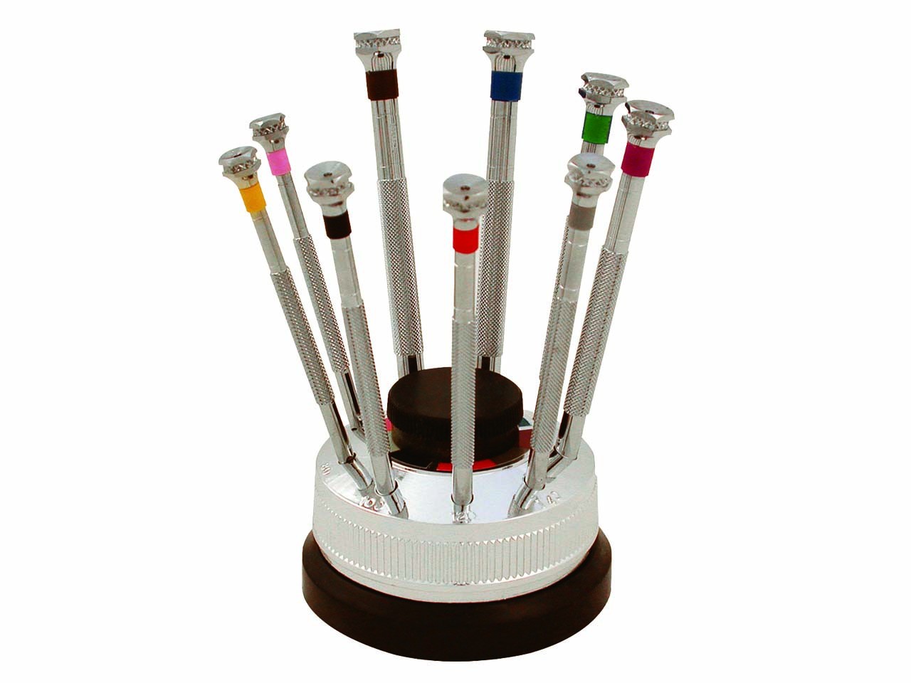 Abmessungen der Klingen: 0,6 - 0,8 - 1 - 1,2 - 1,4 - 1,6 - 2 - 2,5 - 3 mm. Für Schlitzschrauben (flach). Mit 9 Ersatzklingen, die in den Vertiefungen unter dem Deckel verteilt sind. Stahl, nich...